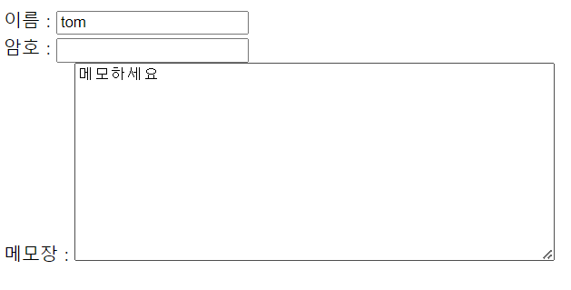 메모장 : <textarea cols="10" rows="5">메모하세요</textarea>