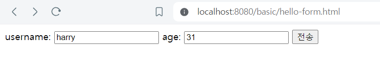- 메시지 바디에 쿼리 파리미터 형식으로 전달 username=hello&age=20