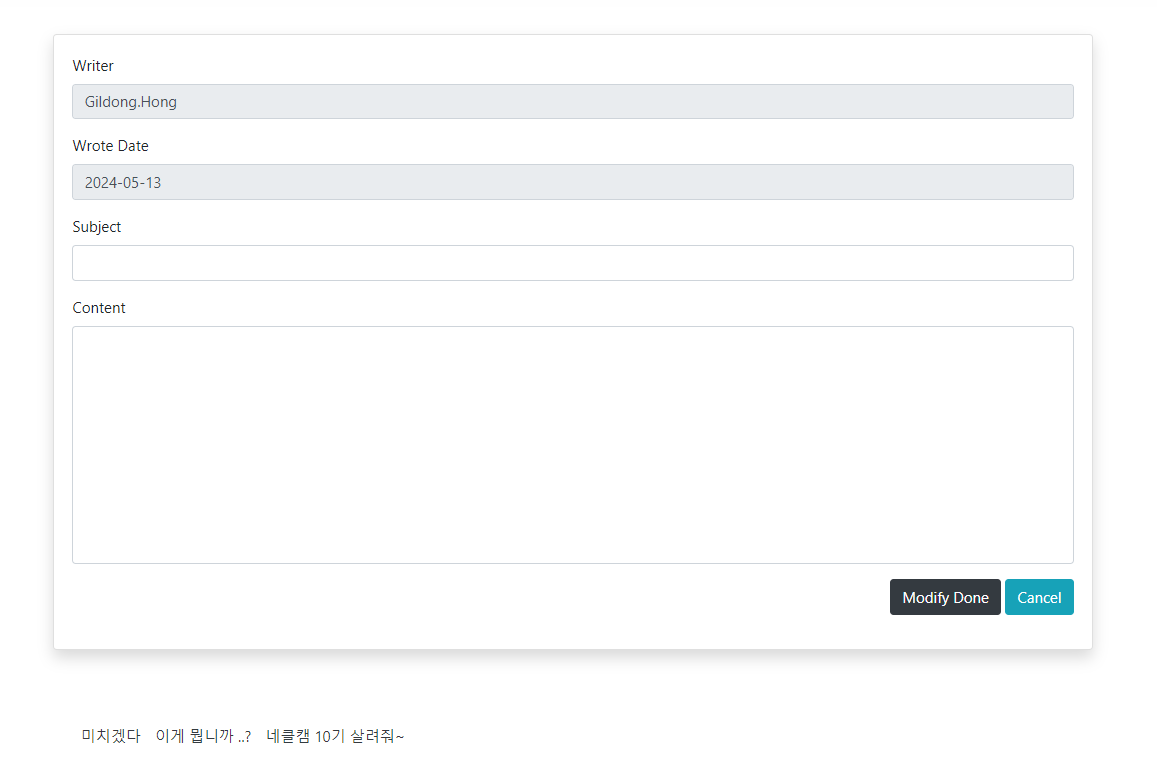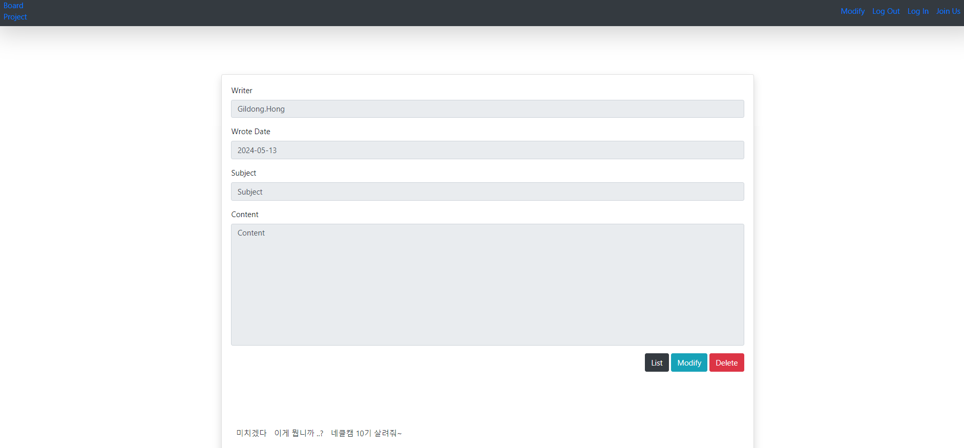 | [Spring] Board CRUD (use Bootstrap) II (1) | 2024.05.14 |