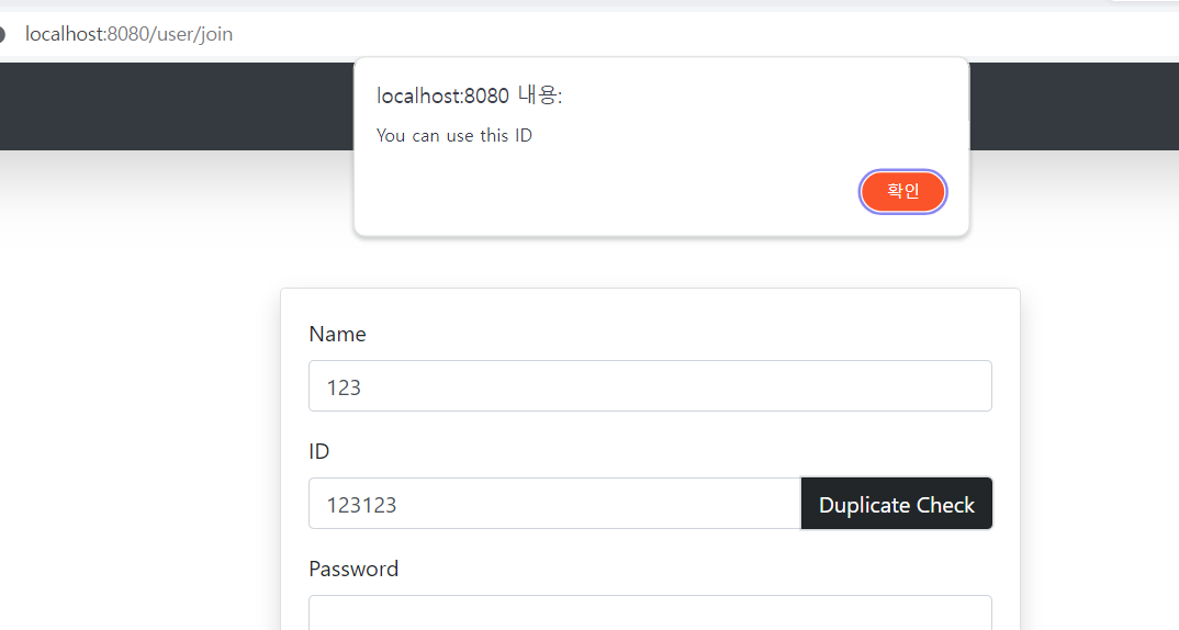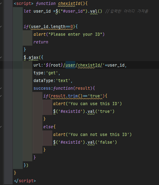 ajax를 사용해서 아이디 중복사용 체크
