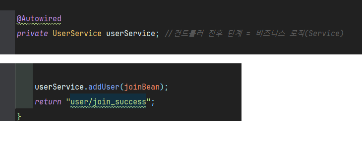userService.addUser(joinBean); //db에 삽입 (insert)