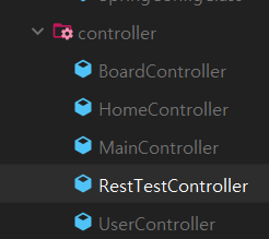 컨트롤러에 RestTestController 추가