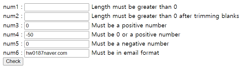 <form:errors path="num1"/><br> <!-- default error message 출력됨 -->